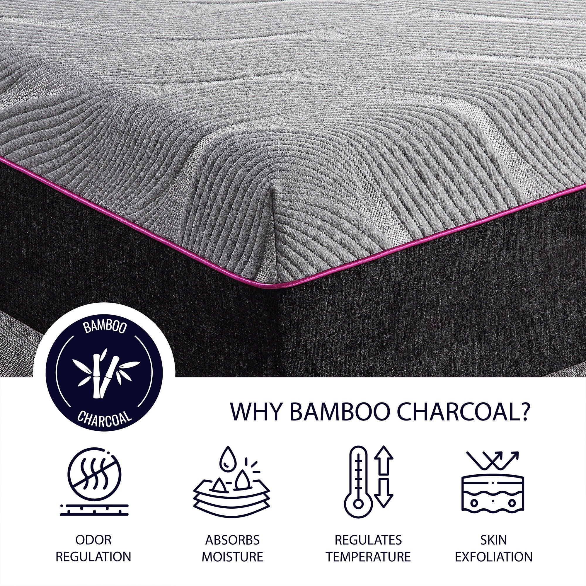 4-Layer Construction for maximum support and comfort Bamboo Charcoal Breathable Knit Cover helps dissipate heat while preventing moisture and odor. Plush Layer - 1.5 inch...